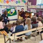 Ce vendredi après-midi les élèves de GS/CP ont pu découvrir un pays: Le Brésil grâce à Roberta et Damien les parents d’Arthur. Ils ont présenté le pays, expliqué ce qu’il y avait au brésil: le drapeau, le carnaval, la forêt amazonienne, le foot… Ils nous ont appris une chanson en portugais, offert des maracas et un bracelet du Brésil. Nous avons aussi rencontré un singe qui vient du Brésil. Et nous avons fait un petit jeu populaire auprès des enfants brésiliens: morto/vivo!