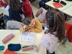 Au programme: mon coeur s’émerveille (expérimenter le silence), le jardin secret de mon coeur (évoquer son espace personnel, sa bulle), mon coeur bat (apprendre à se connaitre et mieux connaitre les autres). Les enfants ont échangé sur leur couleur, chanson animal, sport préférés. Ils ont pu découvrir que chacun est différent, il n’y a pas de bonnes/mauvaises réponses à ces questions. Cette semaine nous nous lançons le défi d’aller à la rencontre de quelqu’un que je ne connais pas très bien dans l’école ou dans la classe.