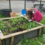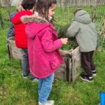 Avec l’arrivée du printemps il est temps de retourner entretenir nos carrés potager. Pour cela la maman de Giulia nous aide et intervient avec un groupe de 6 élèves. Ils ont commencé par nettoyer et désherber puis ils ont semé quelques graines de fleurs et légumes.